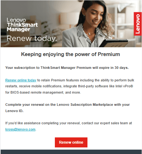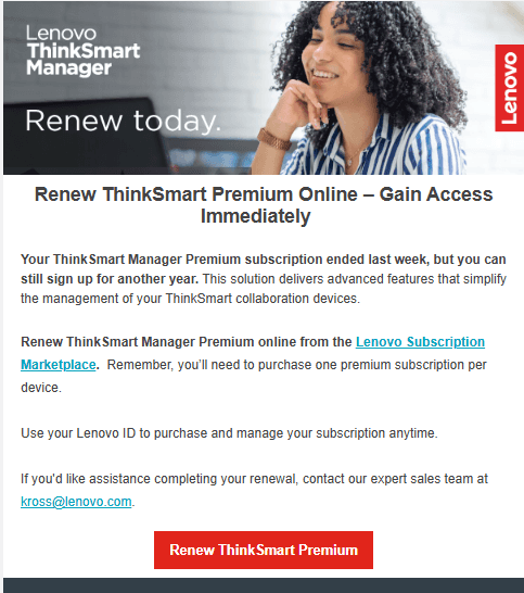Developed customer-focused email content that emphasized the product's Premium subscription features and ease of online checkout/renewal process for customers.